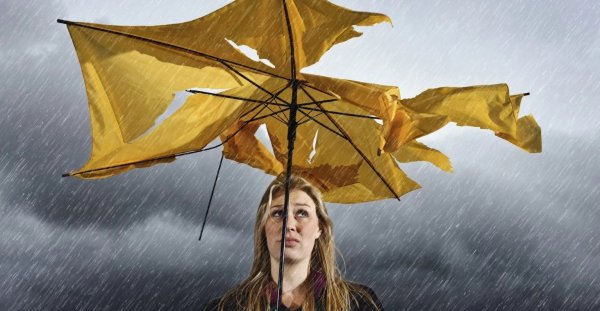 ![Человек с зонтом сильный ветер]()