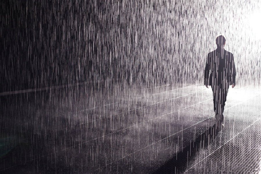 ![Одинокий человек под дождем]()
