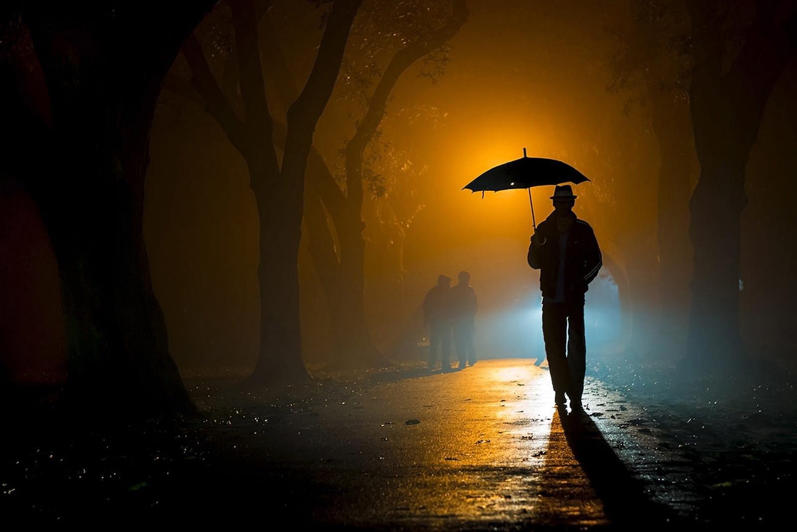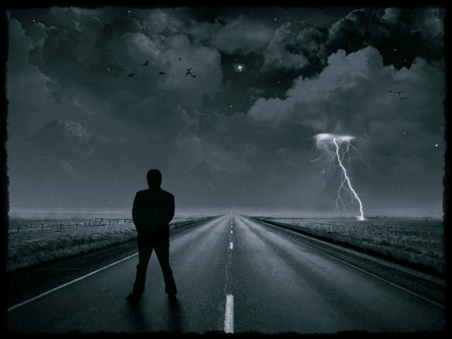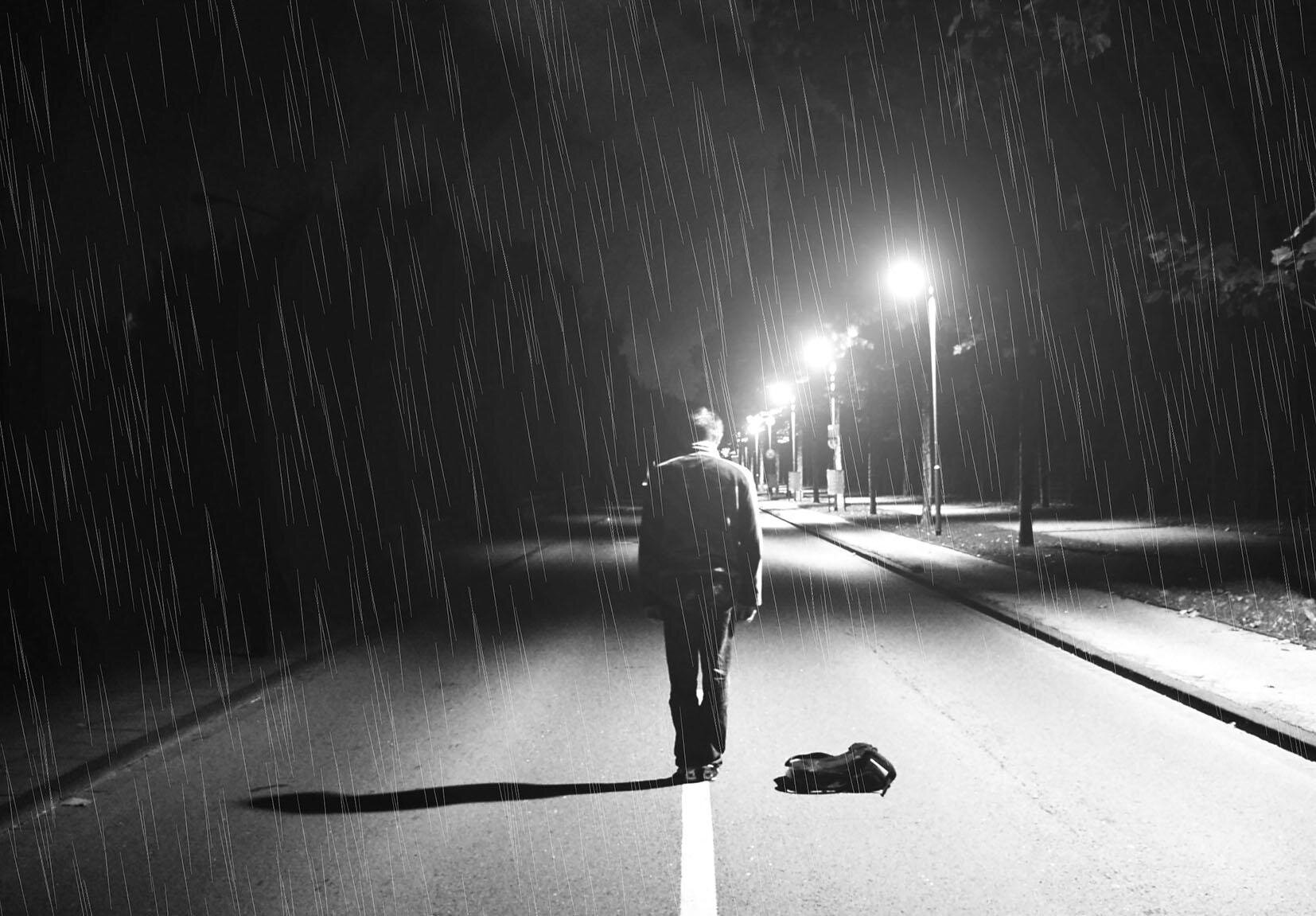 ![Человек ночью под дождем]()