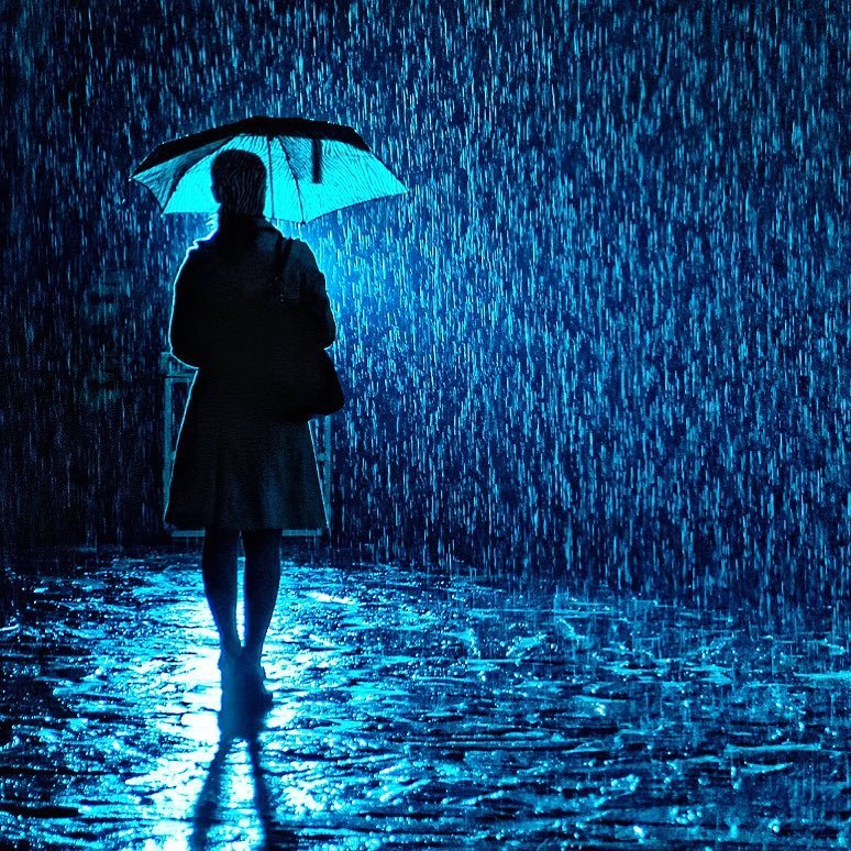 ![Силуэт под дождем]()