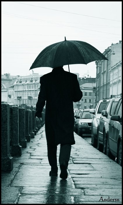 ![Мужчина под зонтом]()