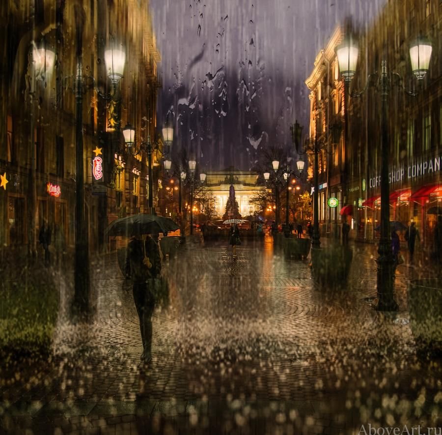 ![Дождливый вечер в городе]()
