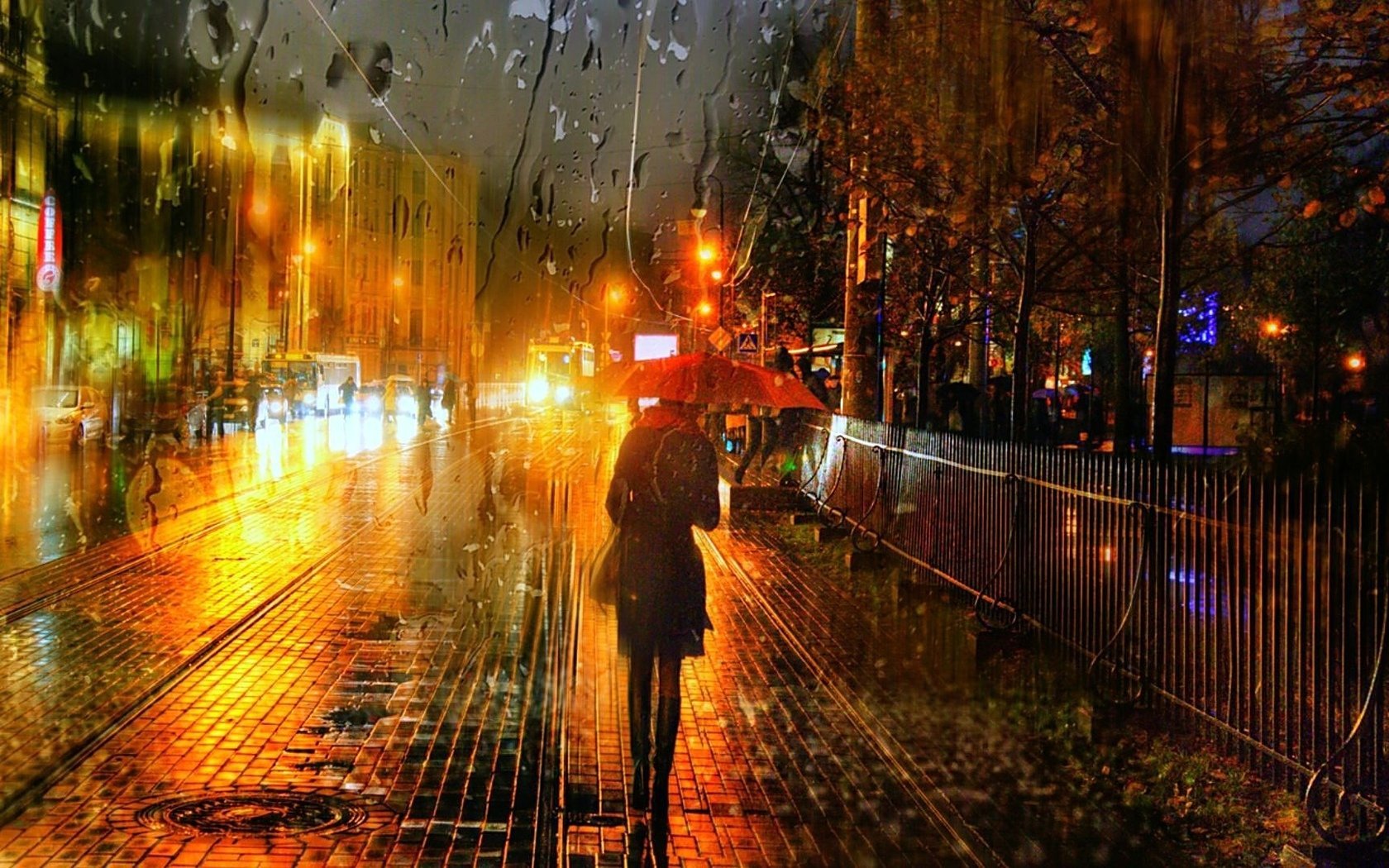 ![Ночной город дождь]()
