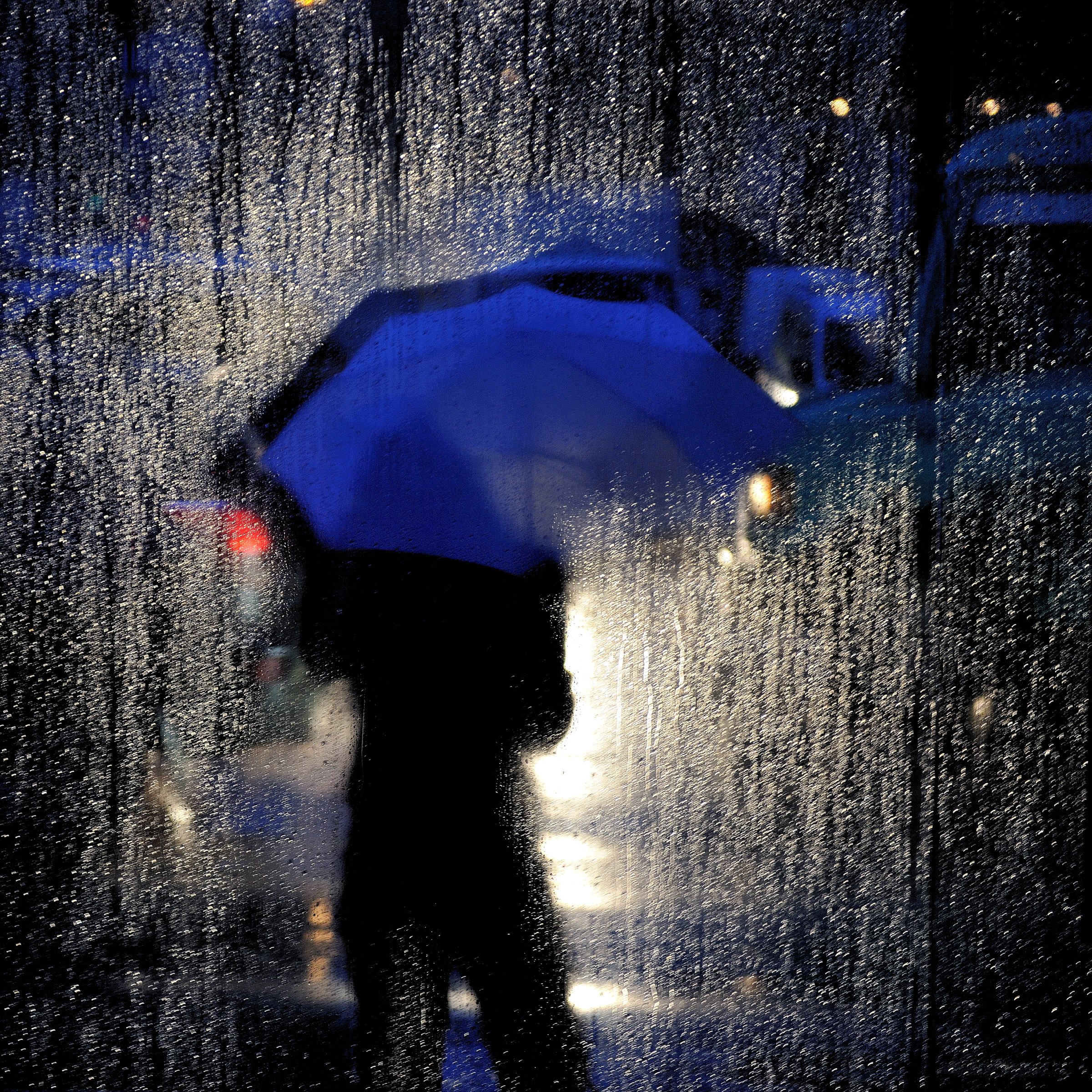 Человек ночью под дождем