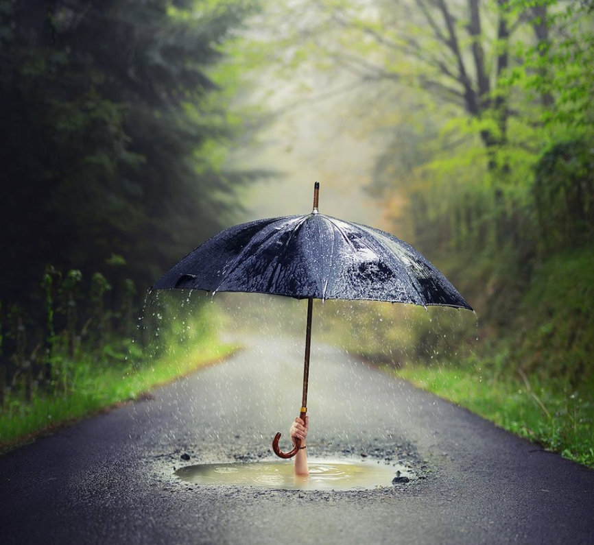 ![Зонт под дождем]()