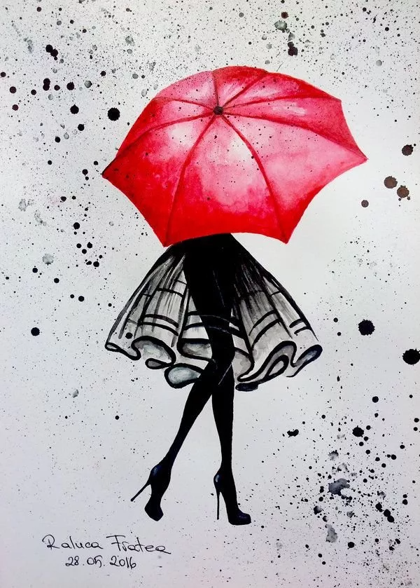 Зонтики акварель рисунок
