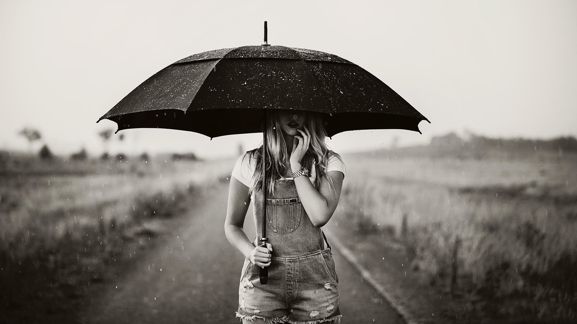 ![Девушка под дождем]()