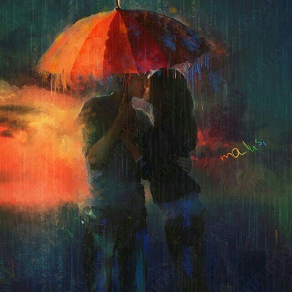 ![Парень и девушка под дождем арт]()