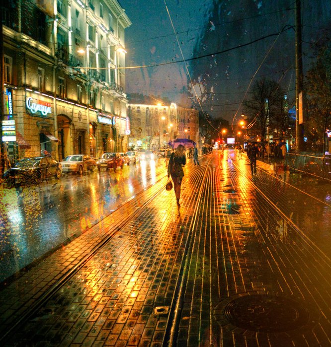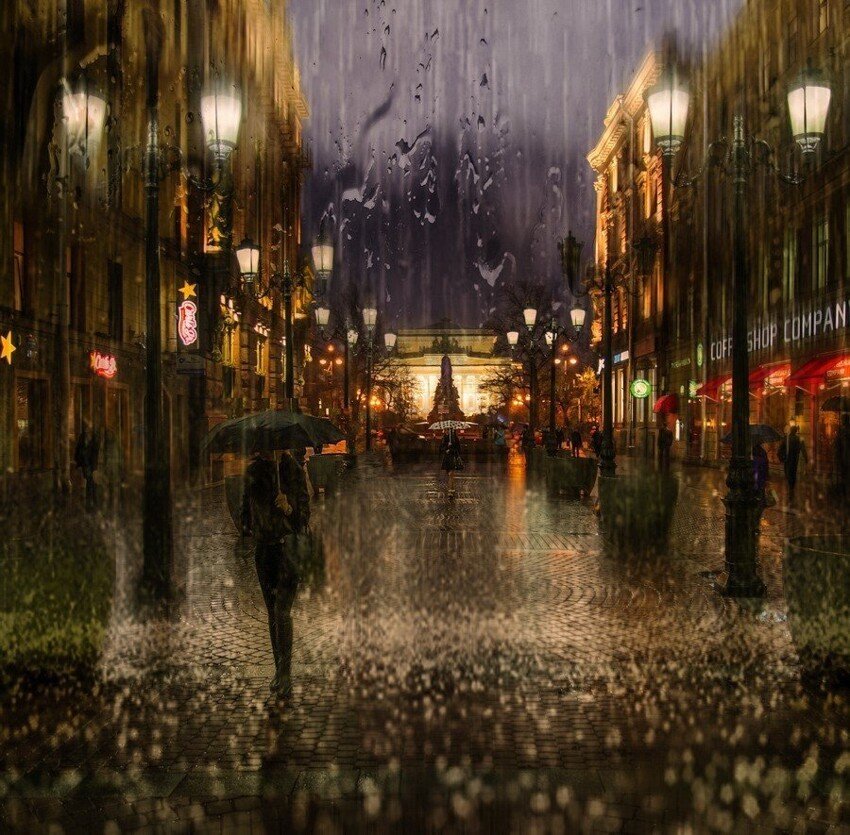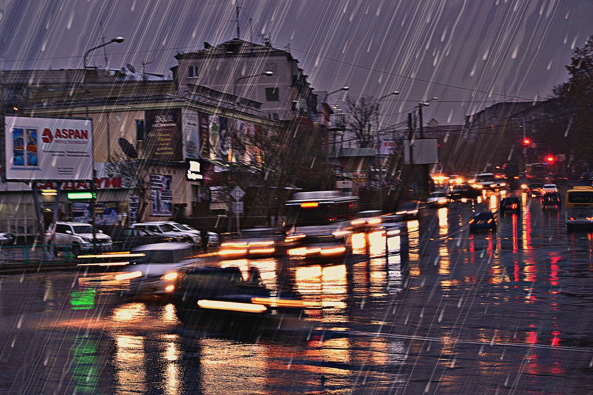 ![Дождливый вечер в городе]()