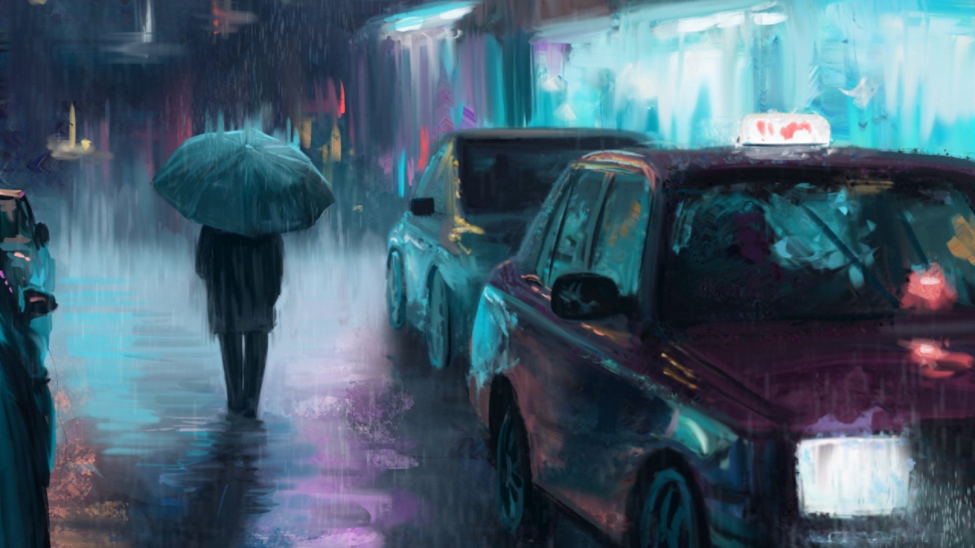 Девушка под дождем арты