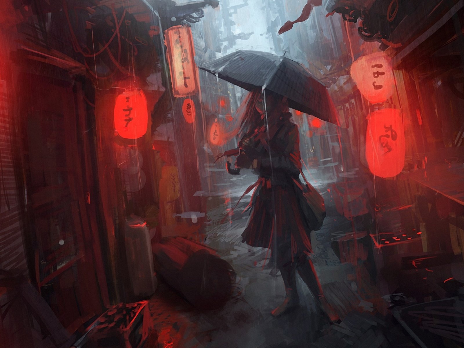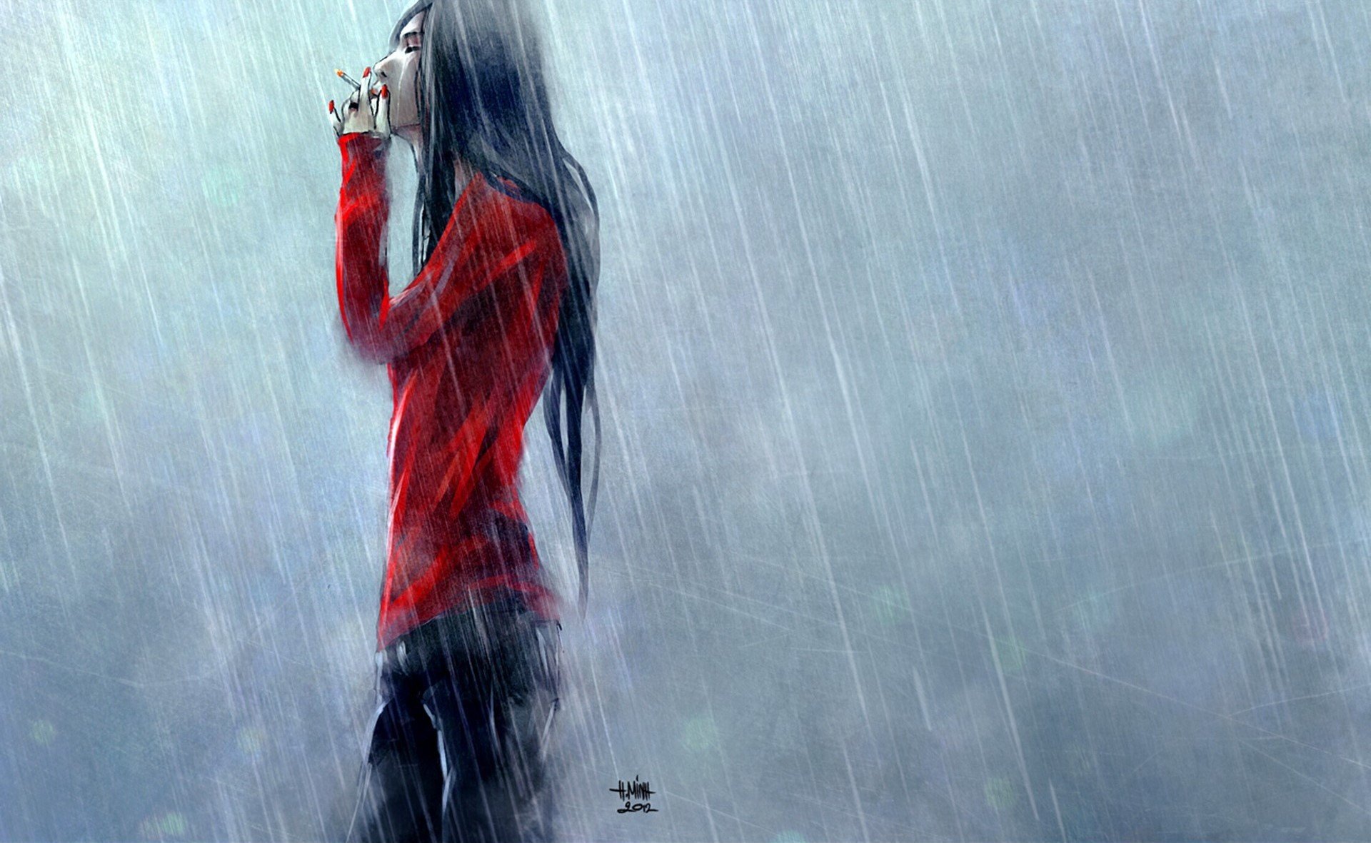 ![Девушка дождь арт]()
