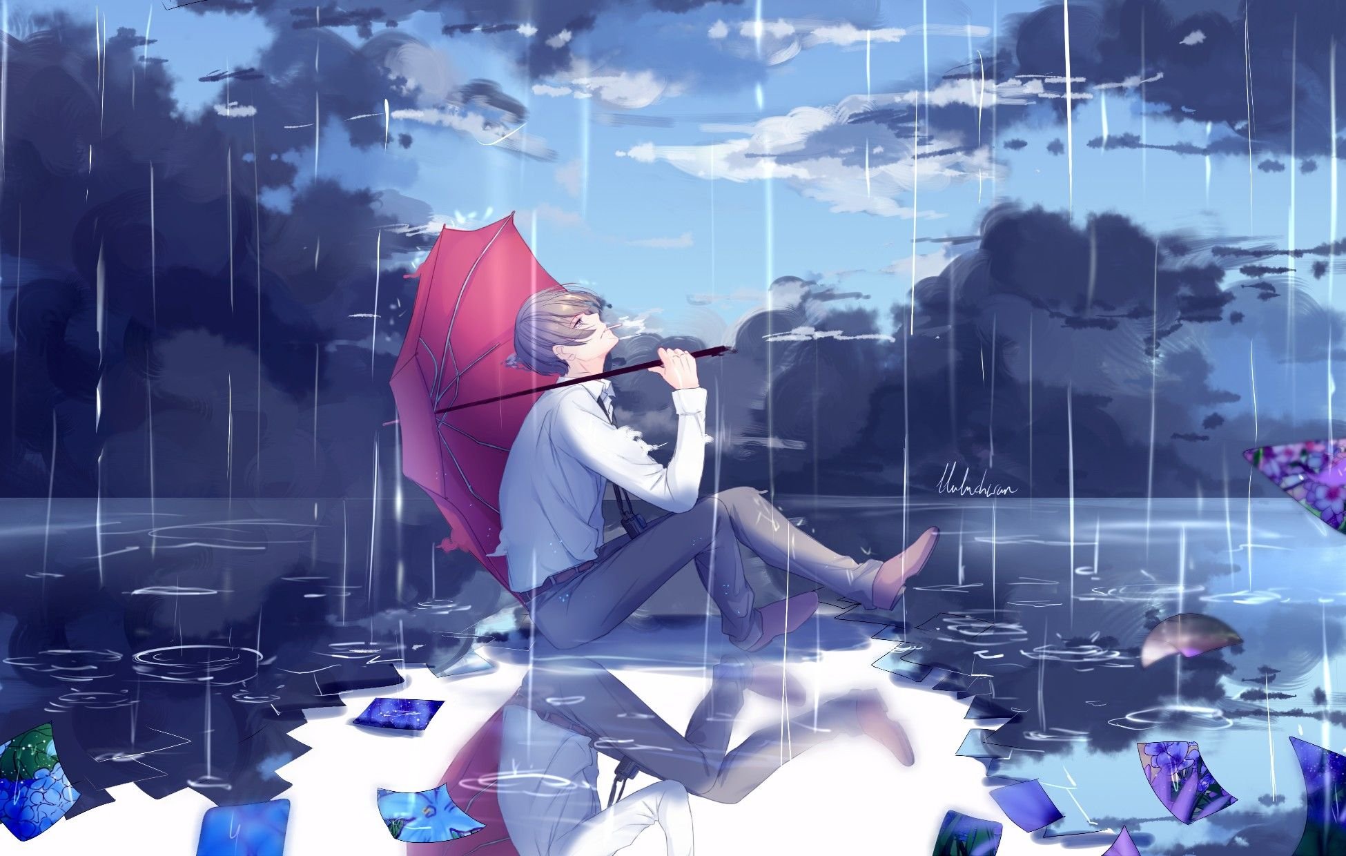 Аниме арт дождь