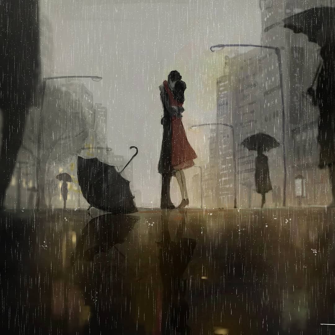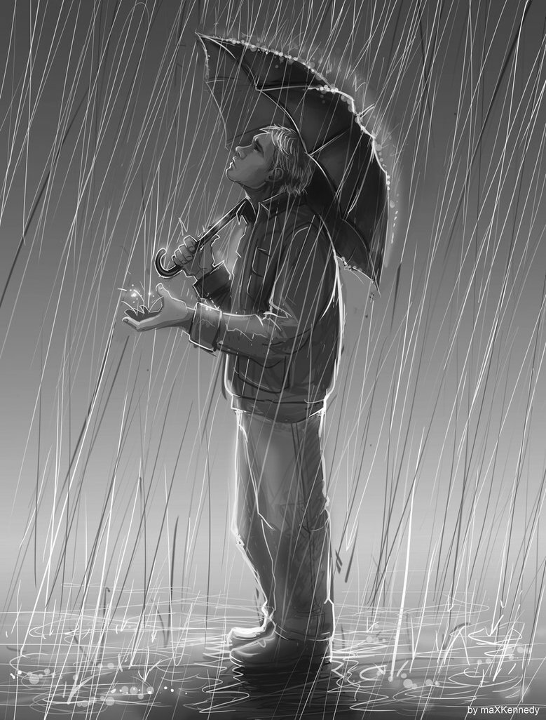 ![Человек под дождем арт]()