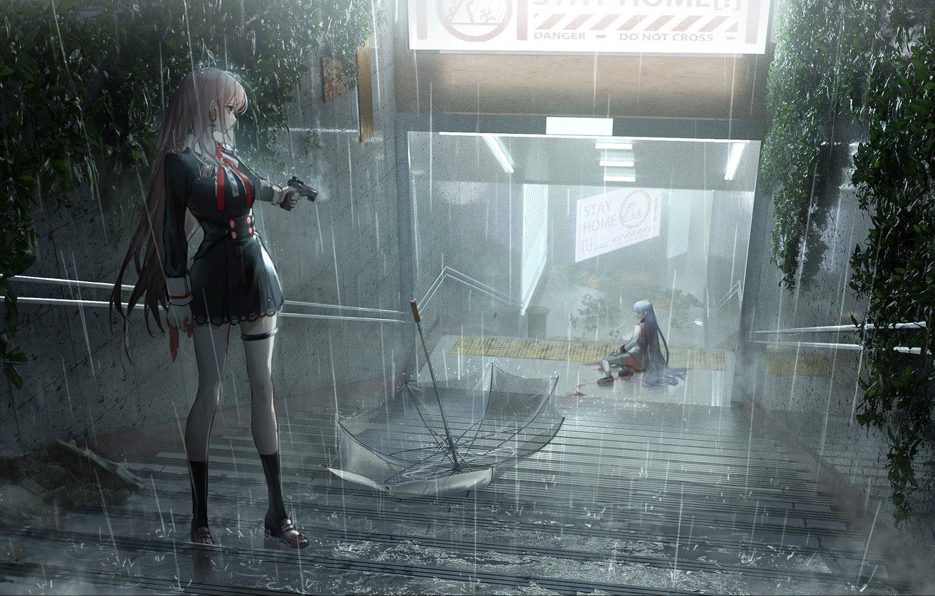 ![Девушка под дождем арты]()