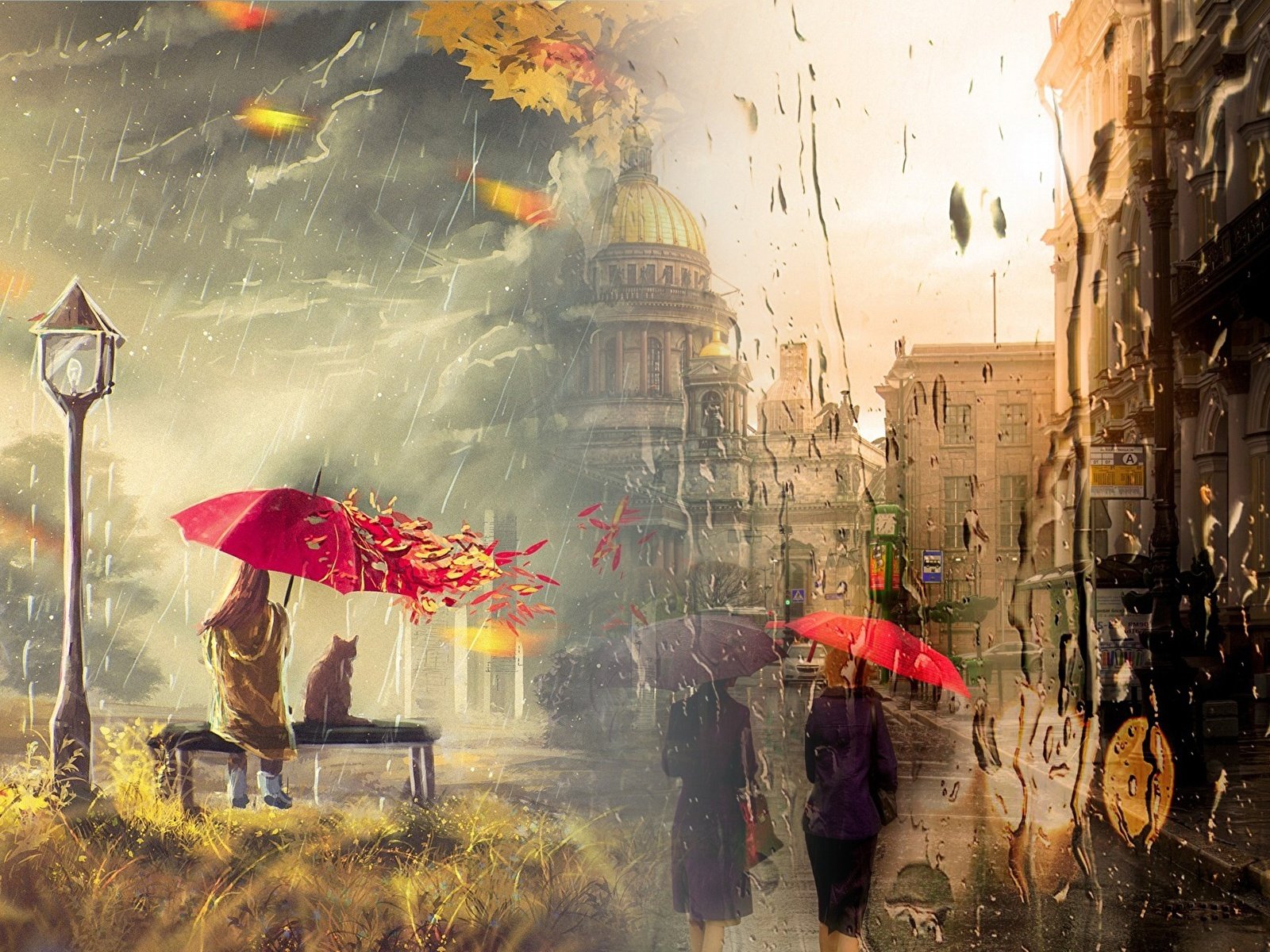 ![Город под дождем]()