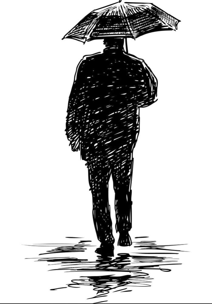 ![Одинокий человек под дождем]()