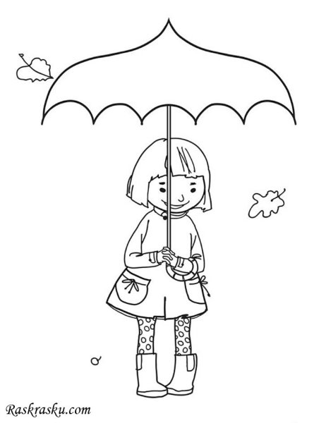 ![Девочка под дождем раскраска]()