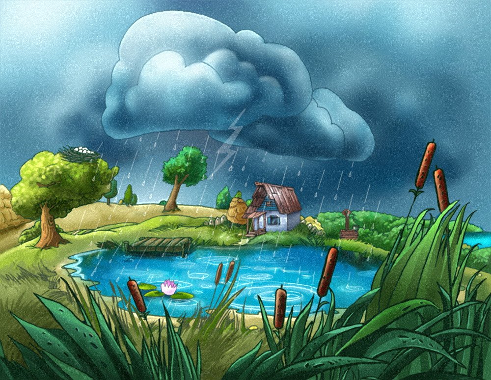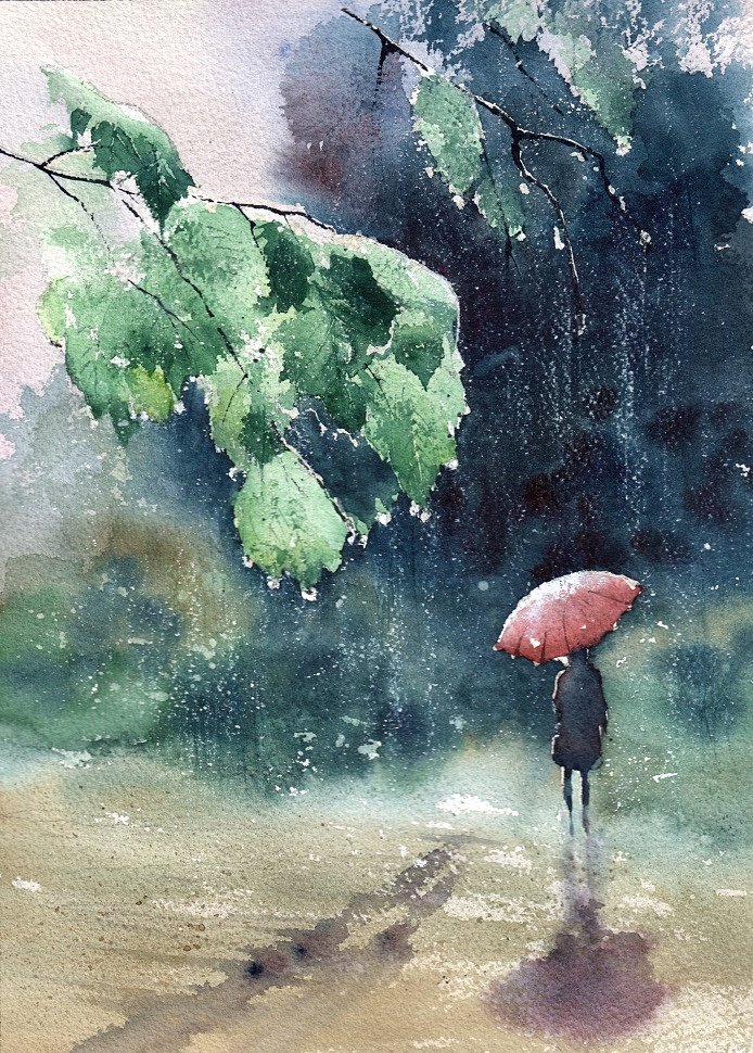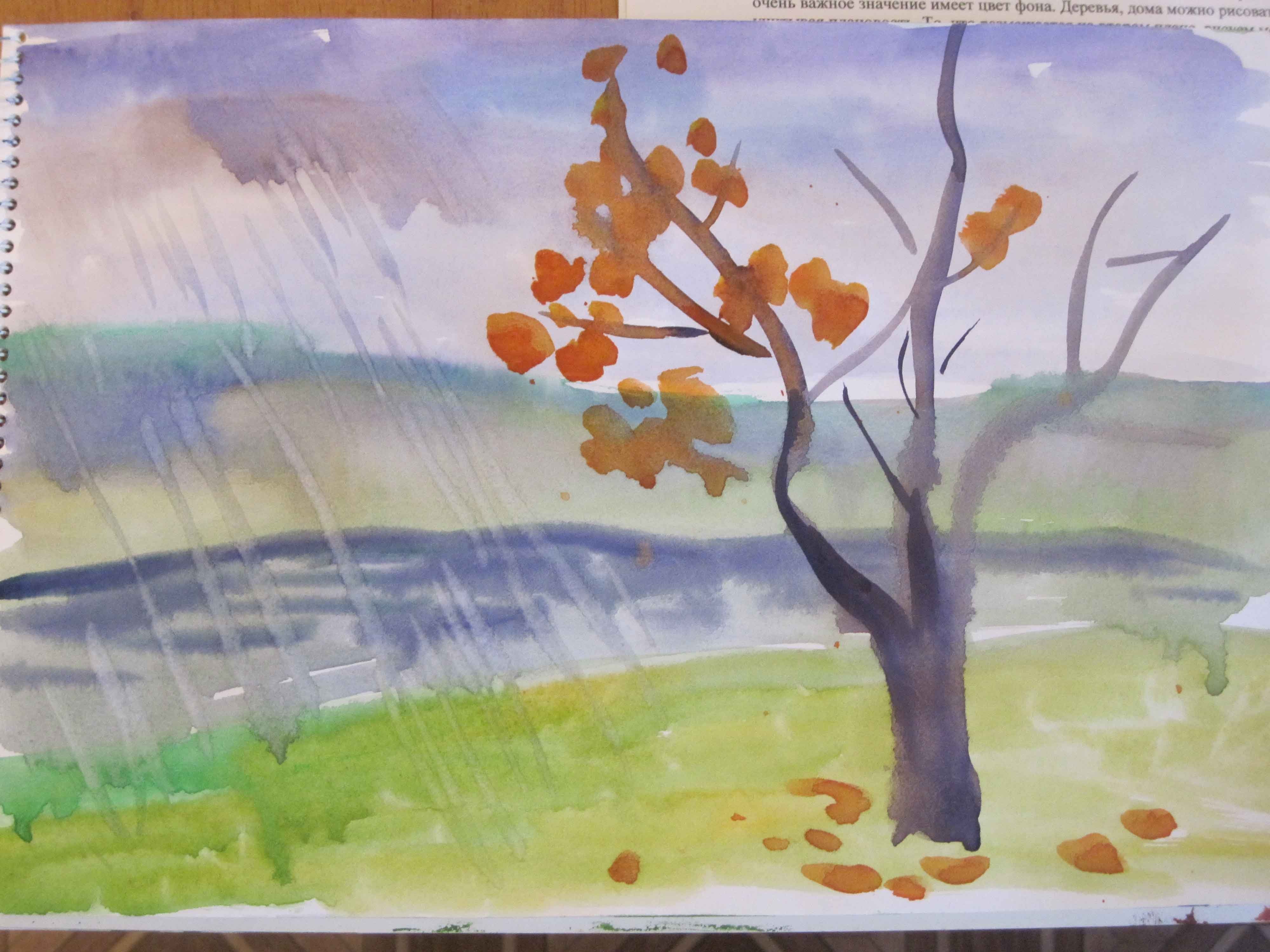 ![Пейзаж с дождем живопись]()