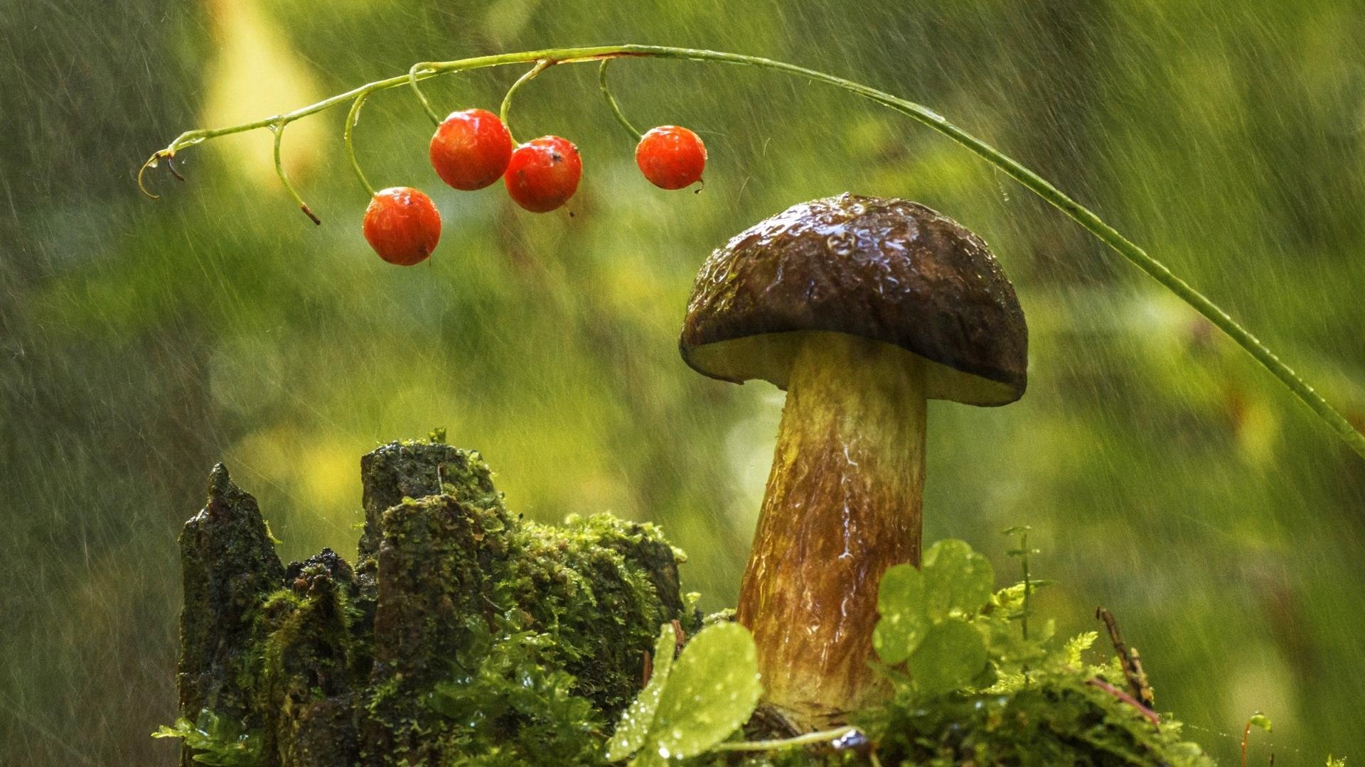 Грибы под дождем