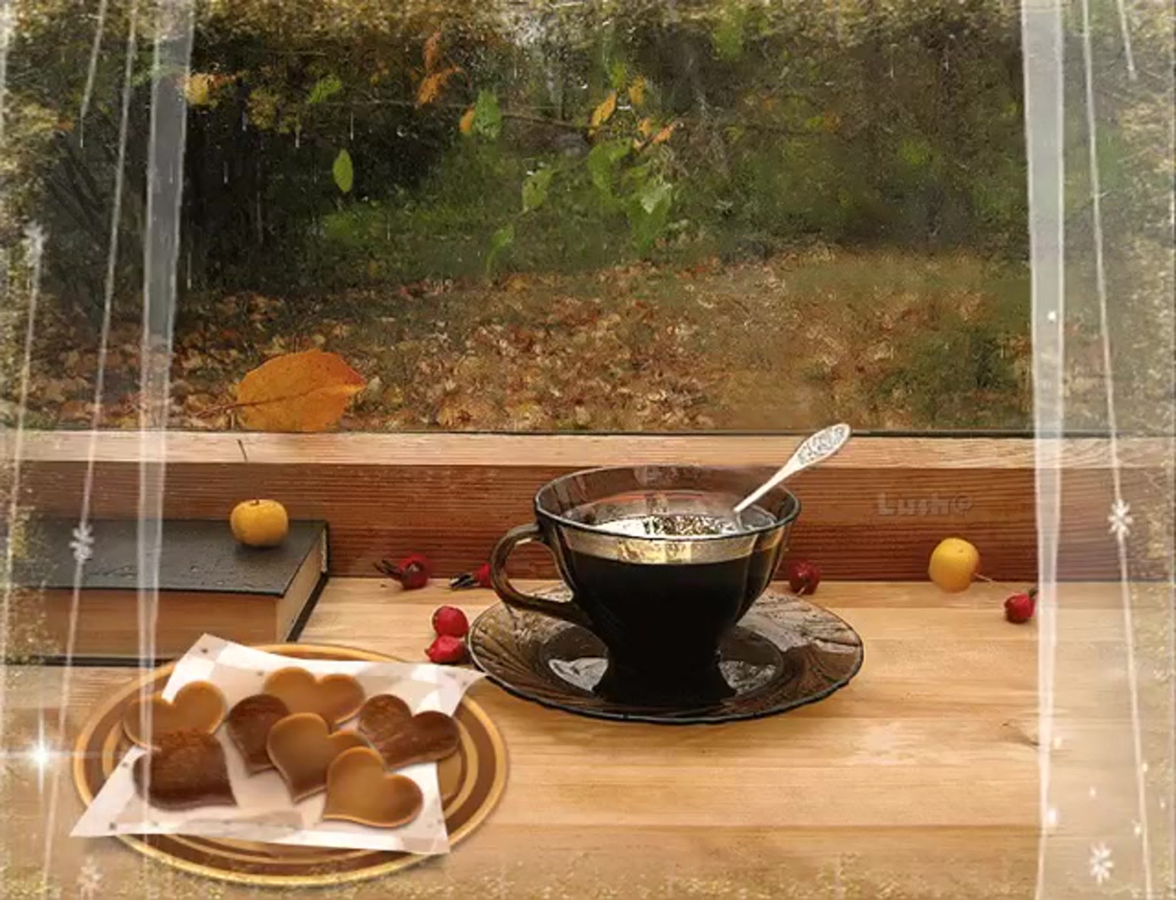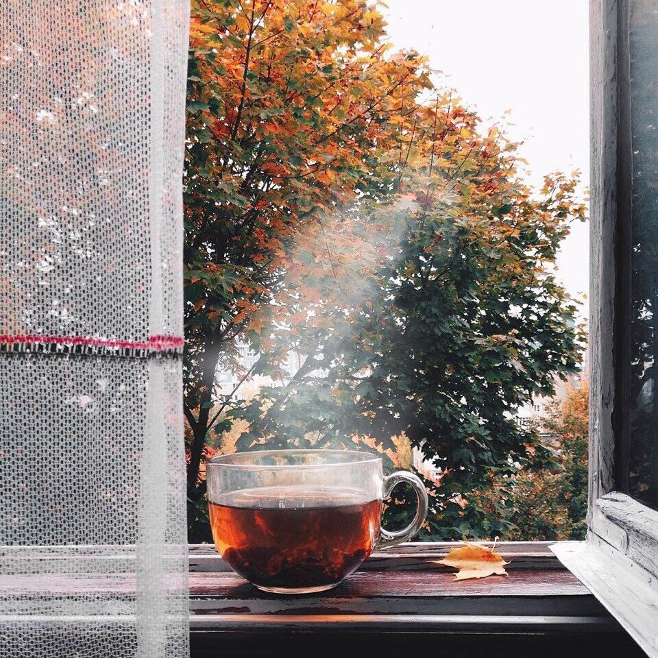 ![Осень чай окно]()