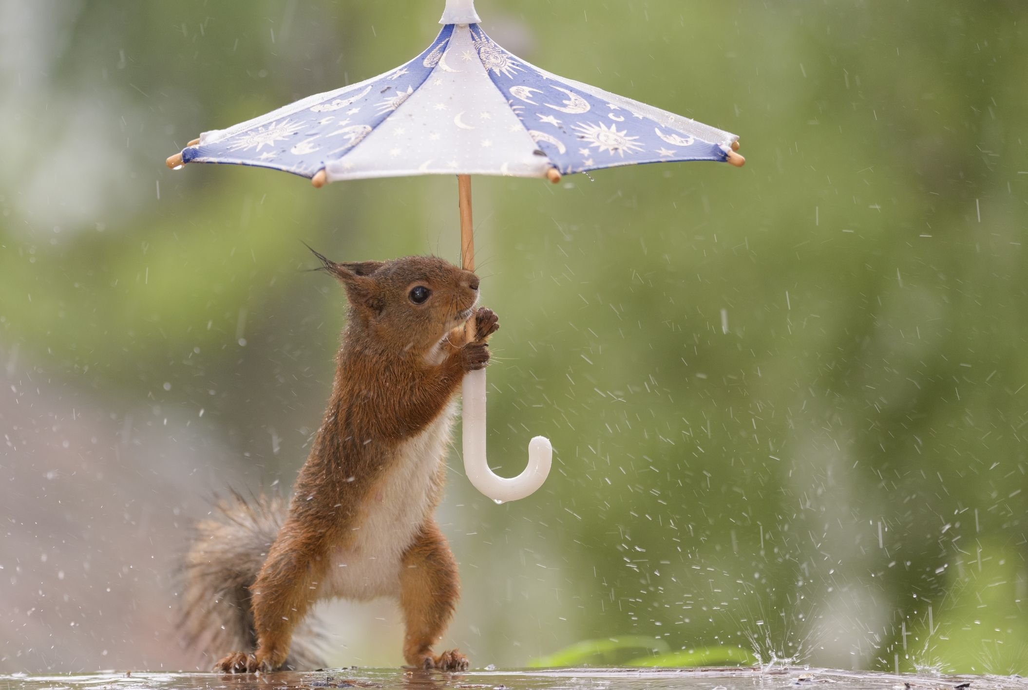 ![Белка под дождем]()