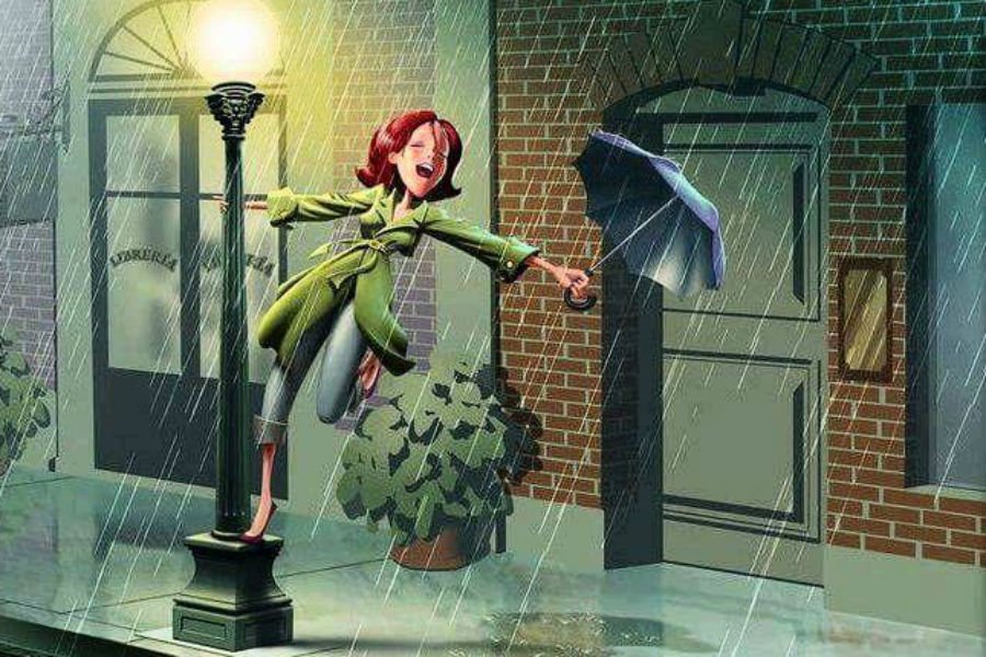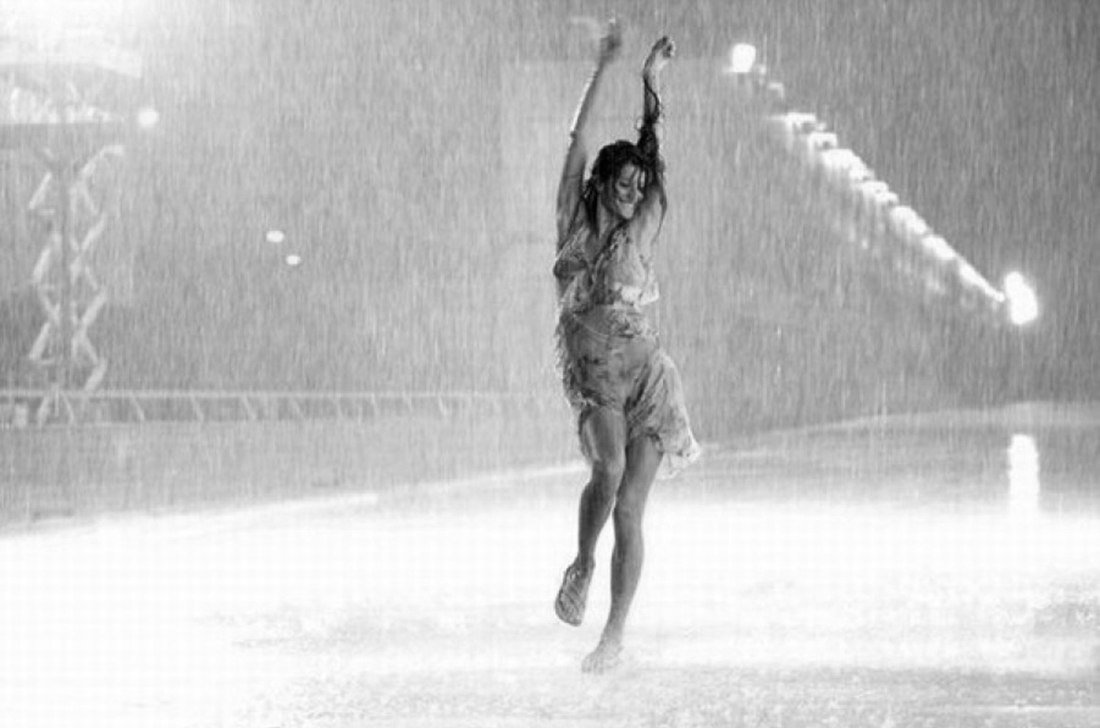 ![Девушка танцует под дождем]()