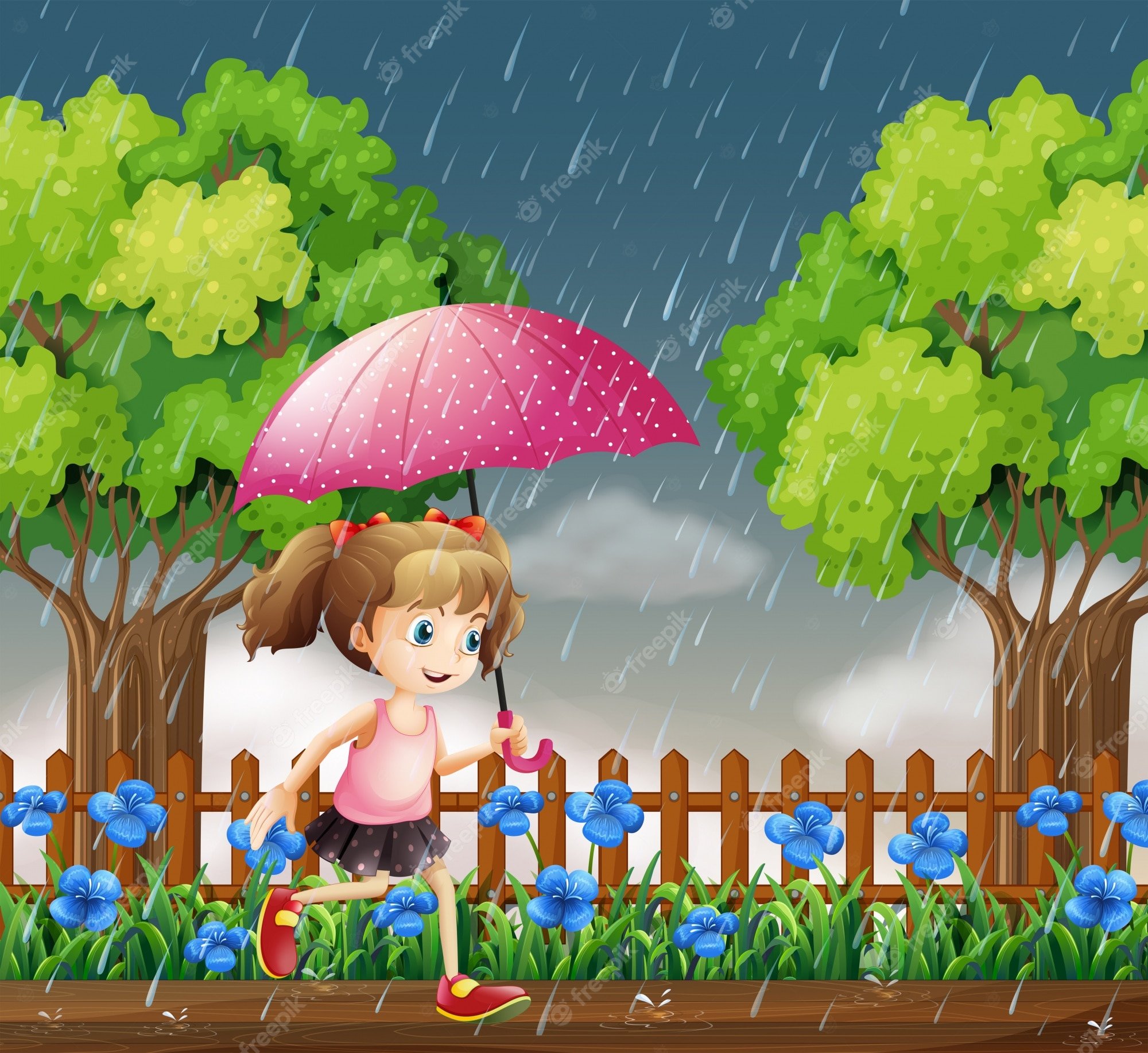 ![Дождь в саду для детей]()