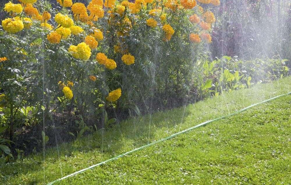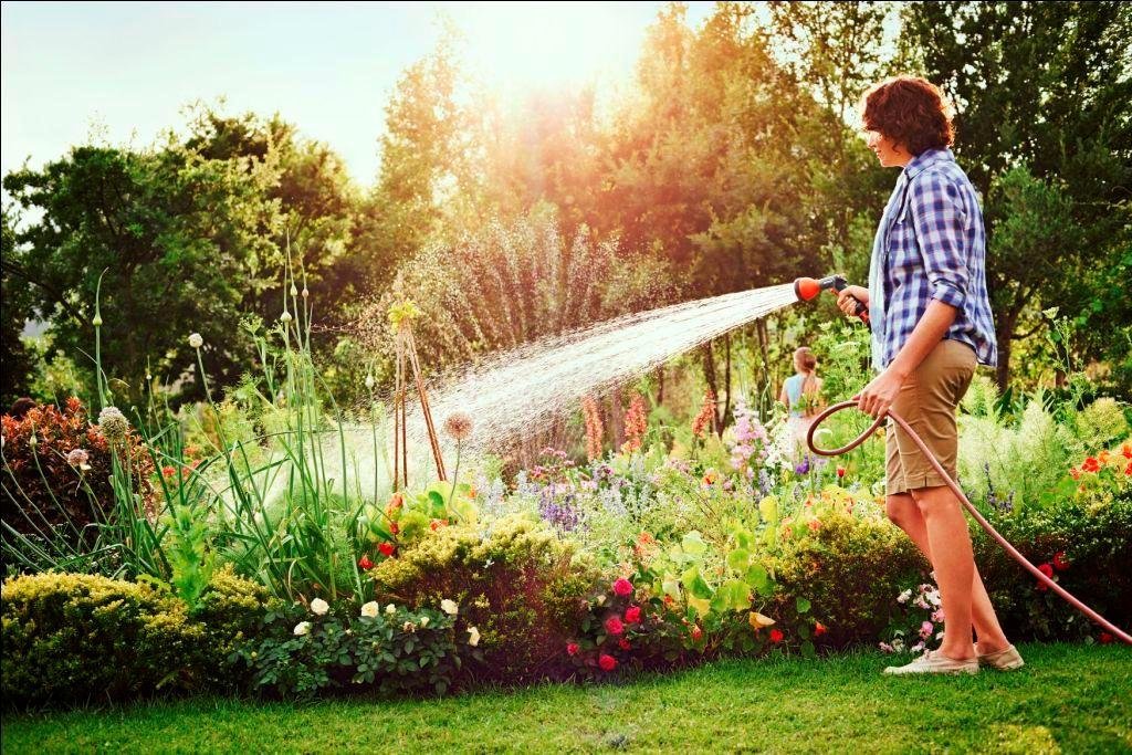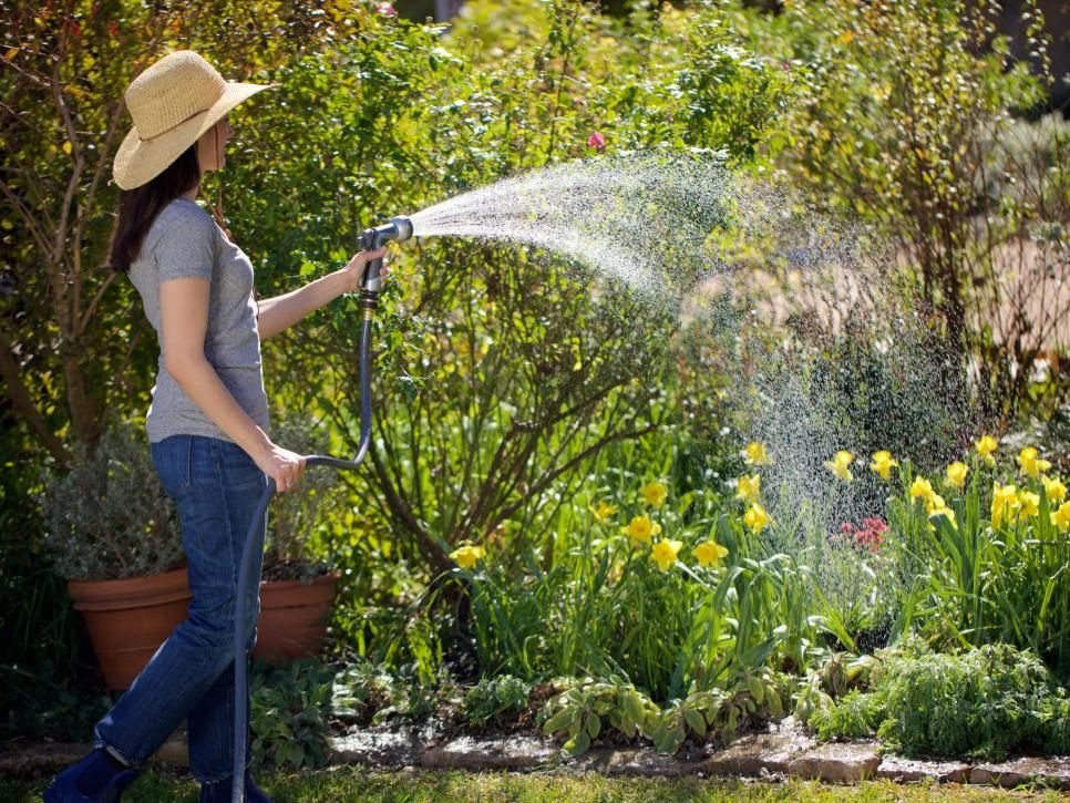 ![Полив огорода из шланга]()