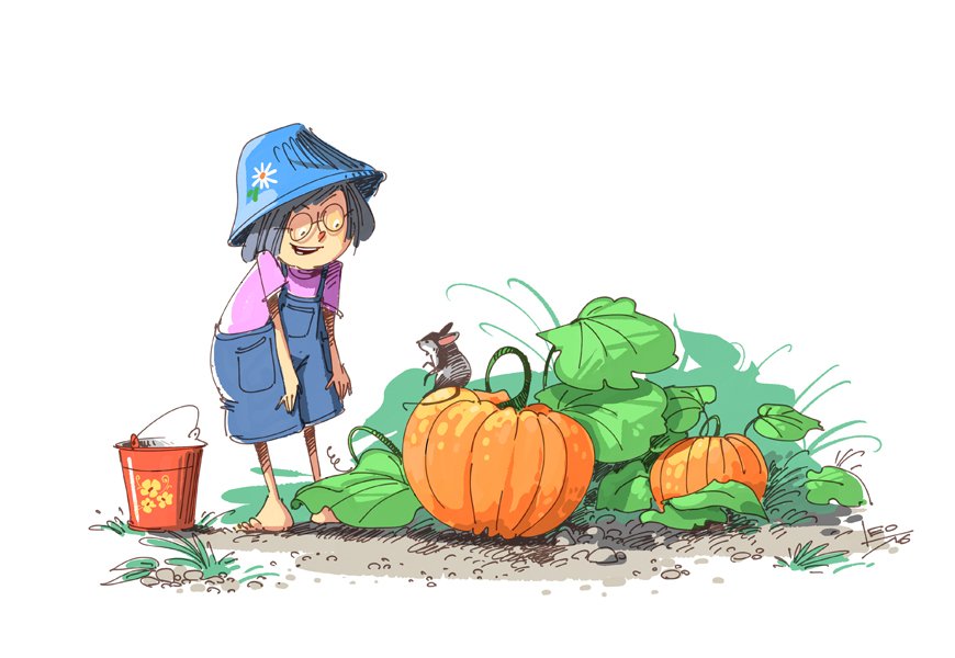 ![Дедушка с лейкой]()