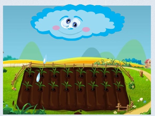 ![Дождик поливает грядки]()