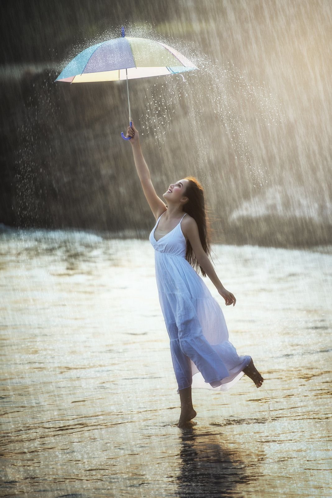 Девочка танцует под дождем