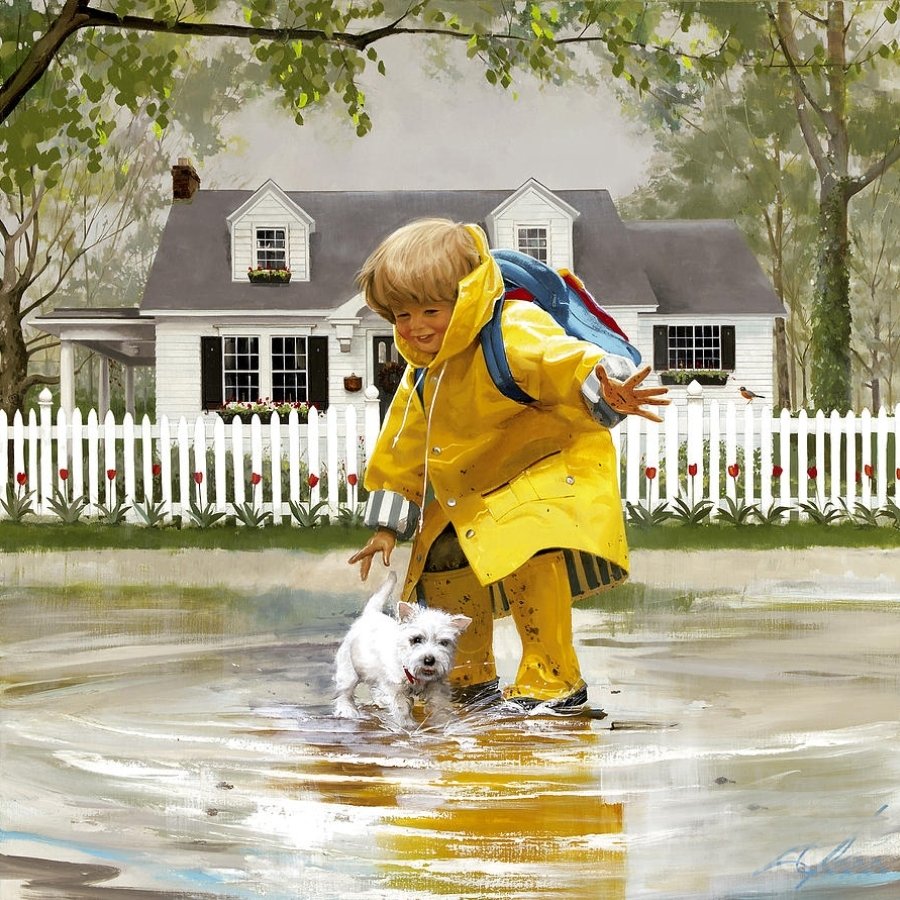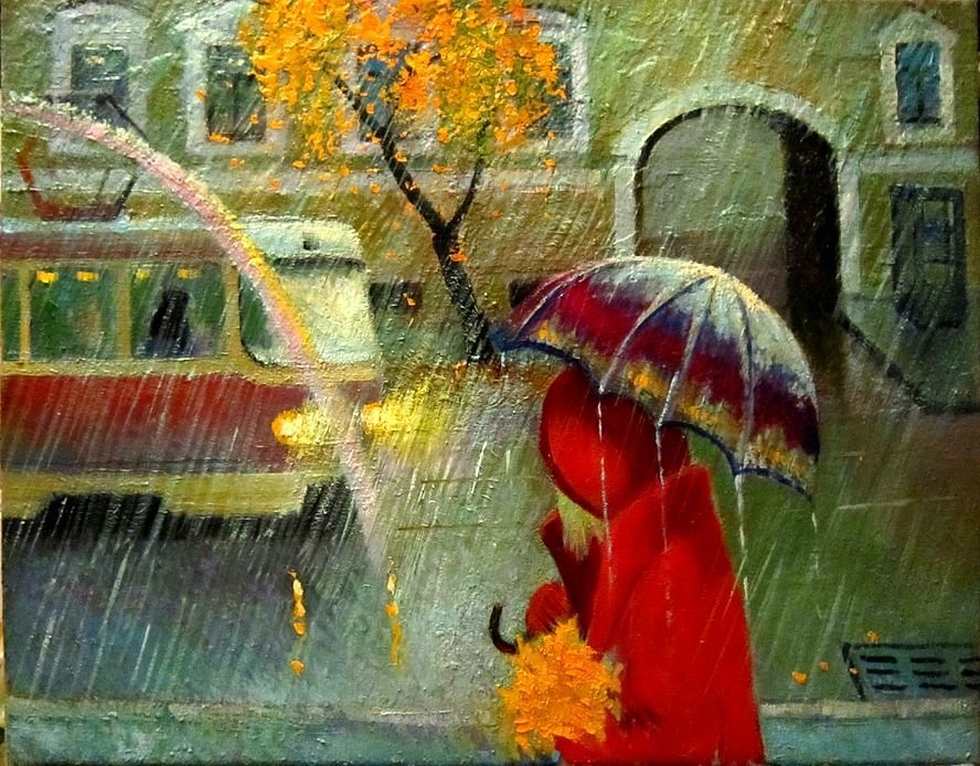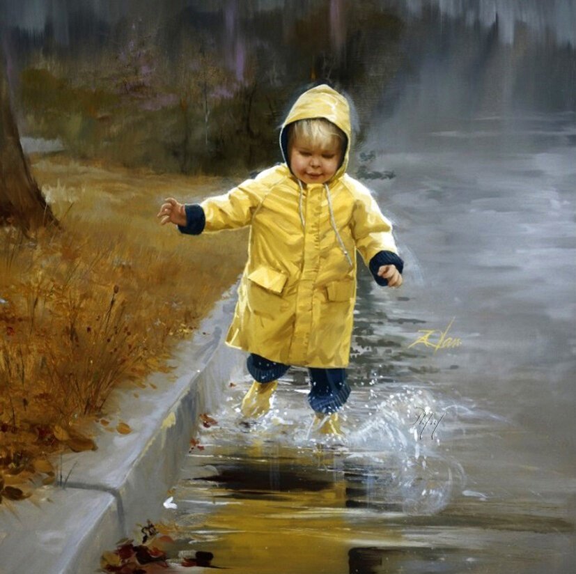 ![Дети под дождем живопись]()