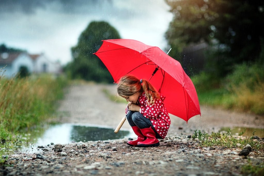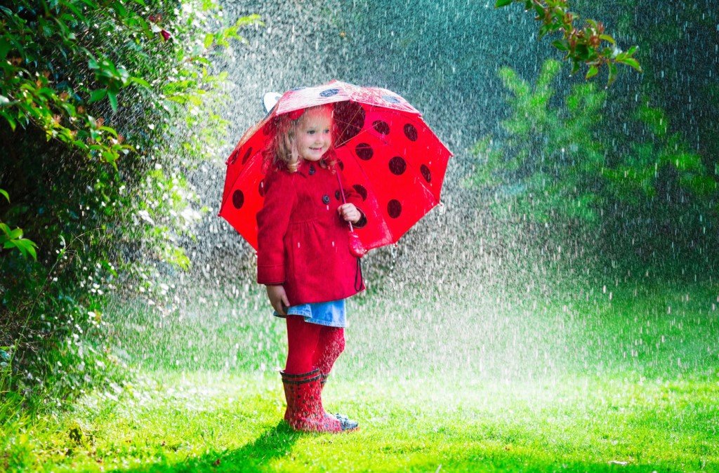 ![Девочка в куртке под дождем]()