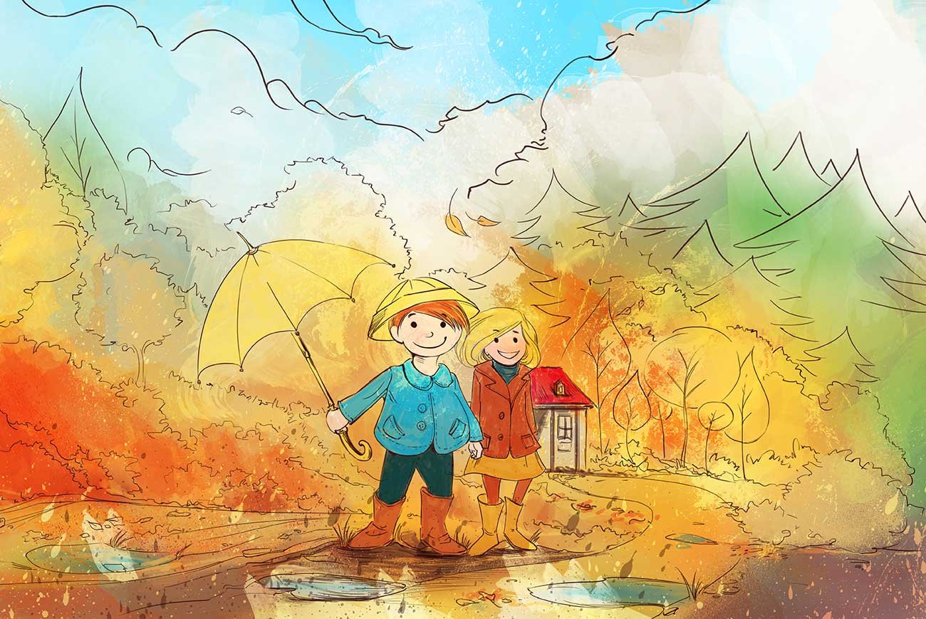 ![Осень дети под зонтом]()