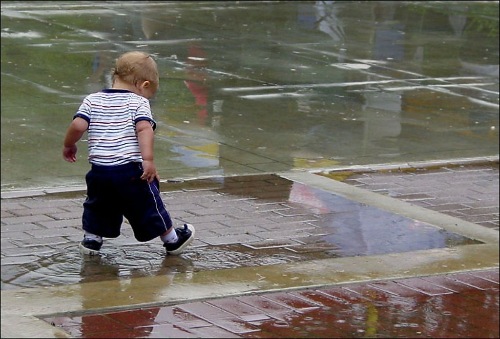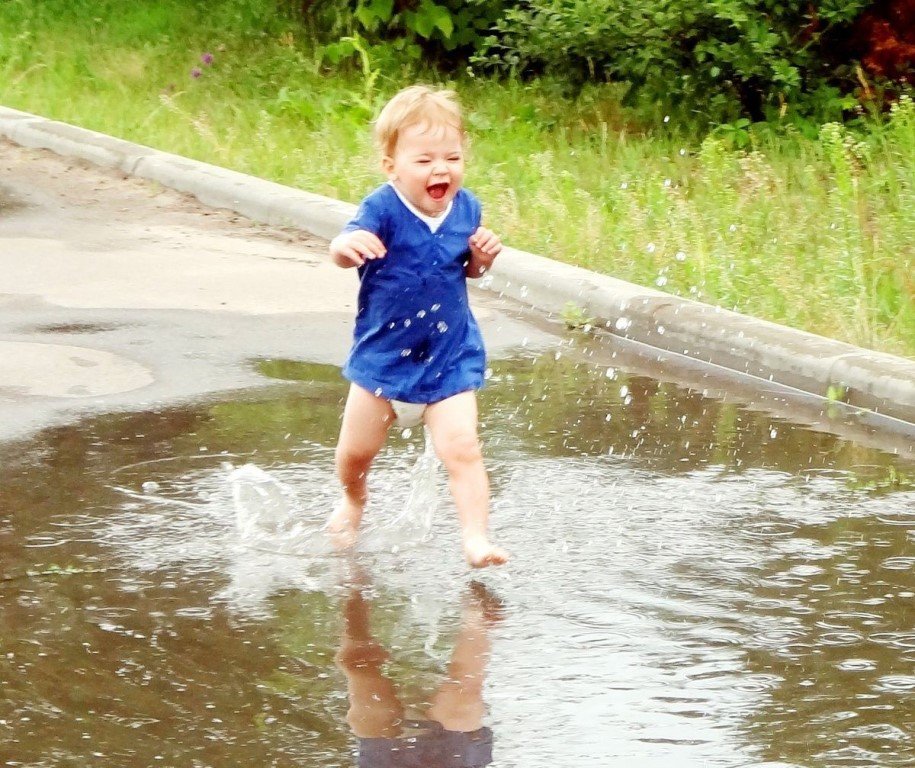 ![Ребенок в луже]()