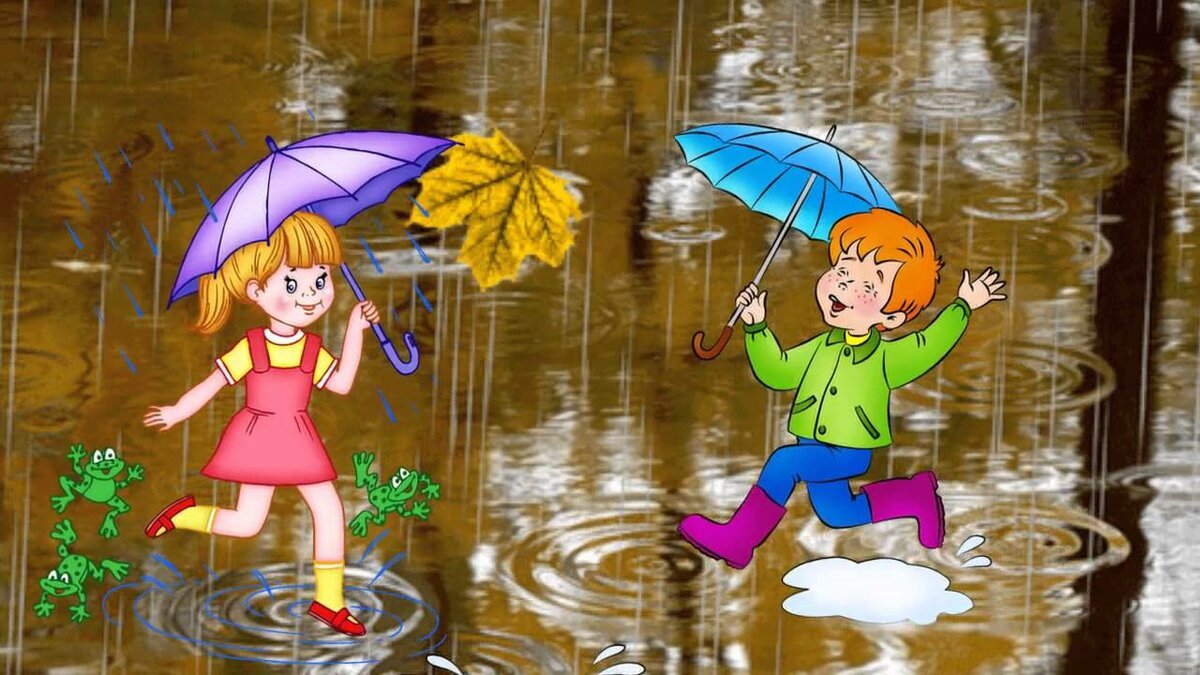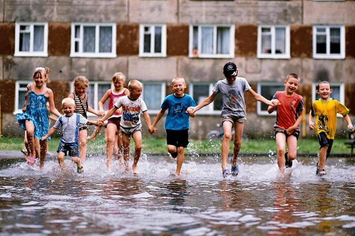 ![Дети бегают по лужам]()
