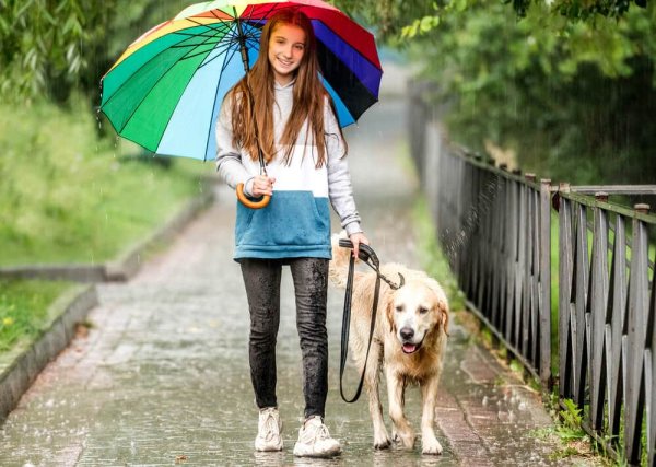 ![Прогулка с собакой в дождь]()