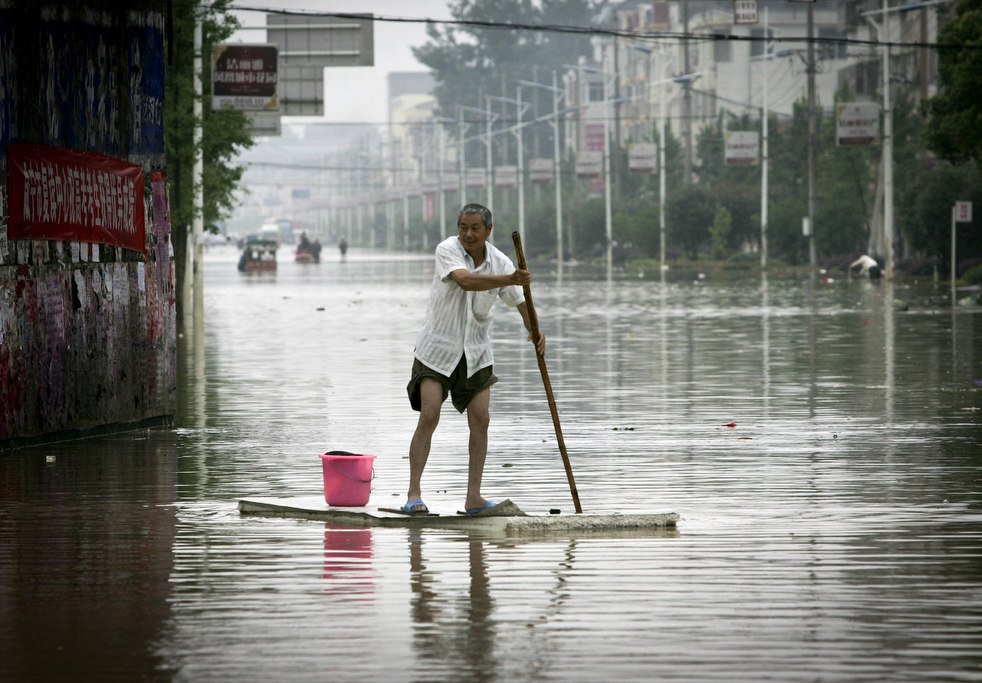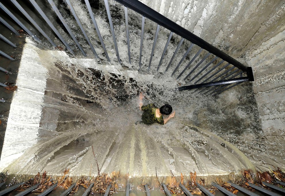 Наводнение человек в воде