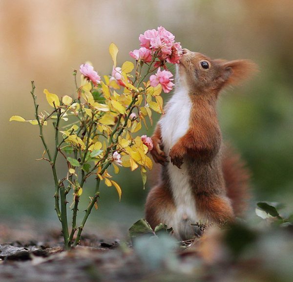 ![Белочка с цветами]()