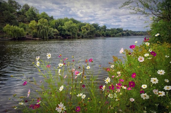![Лето река цветы]()