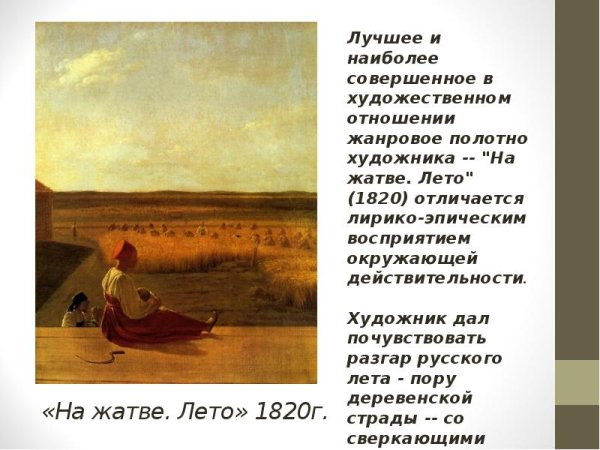 А.Г. Венецианова «на жатве. Лето»