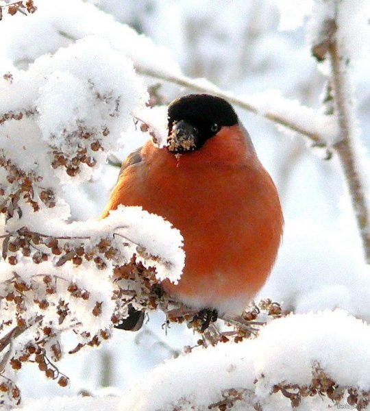 ![Снегири зимой на снегу]()