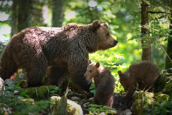 ![Бурая Медведица с медвежатами]()