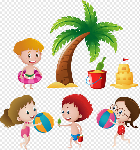 ![Дети на пляже мультяшные]()