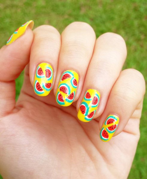 Летний маникюр с фруктами