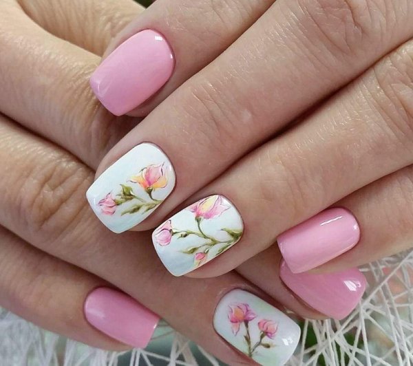 Маникюр розовый с цветами