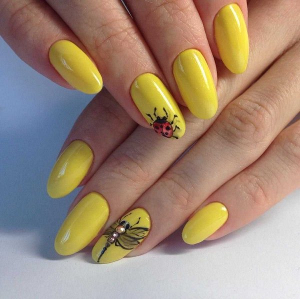 Жёлтый маникюр 2021 на миндальной форме