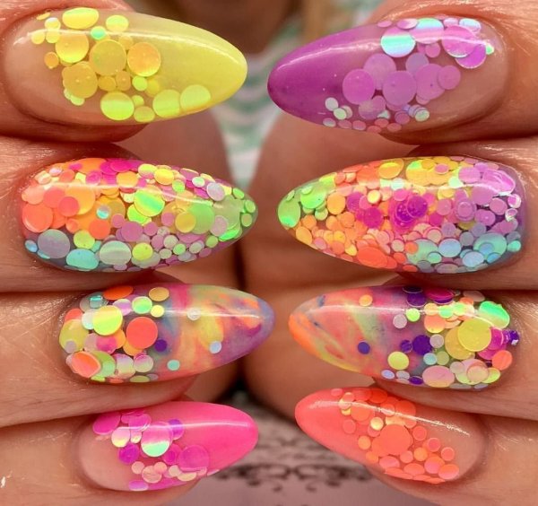 ![Летние разноцветные ногти]()