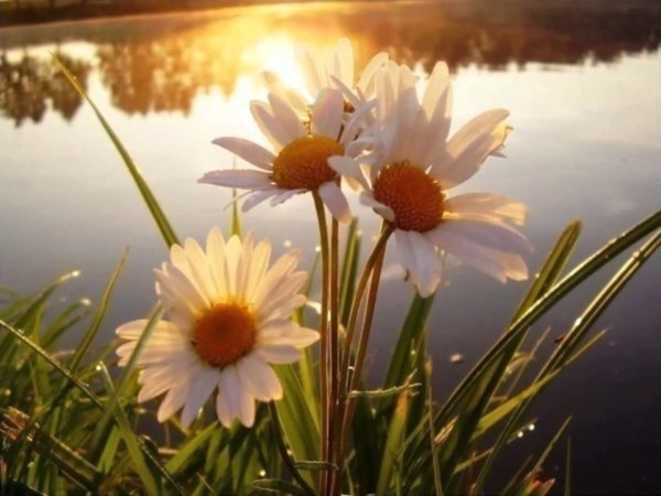 ![Красивое утро ромашки]()