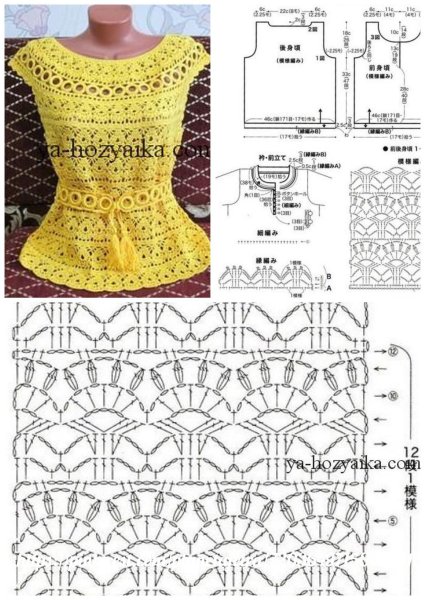 ![Вязание крючком схемы ажурных узоров кофточек]()